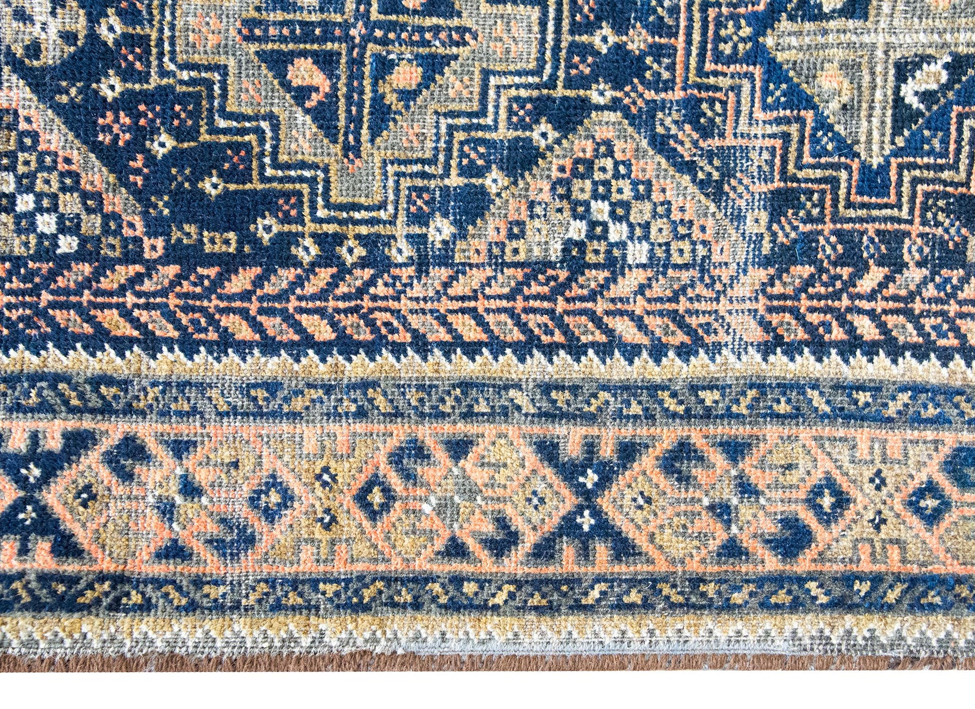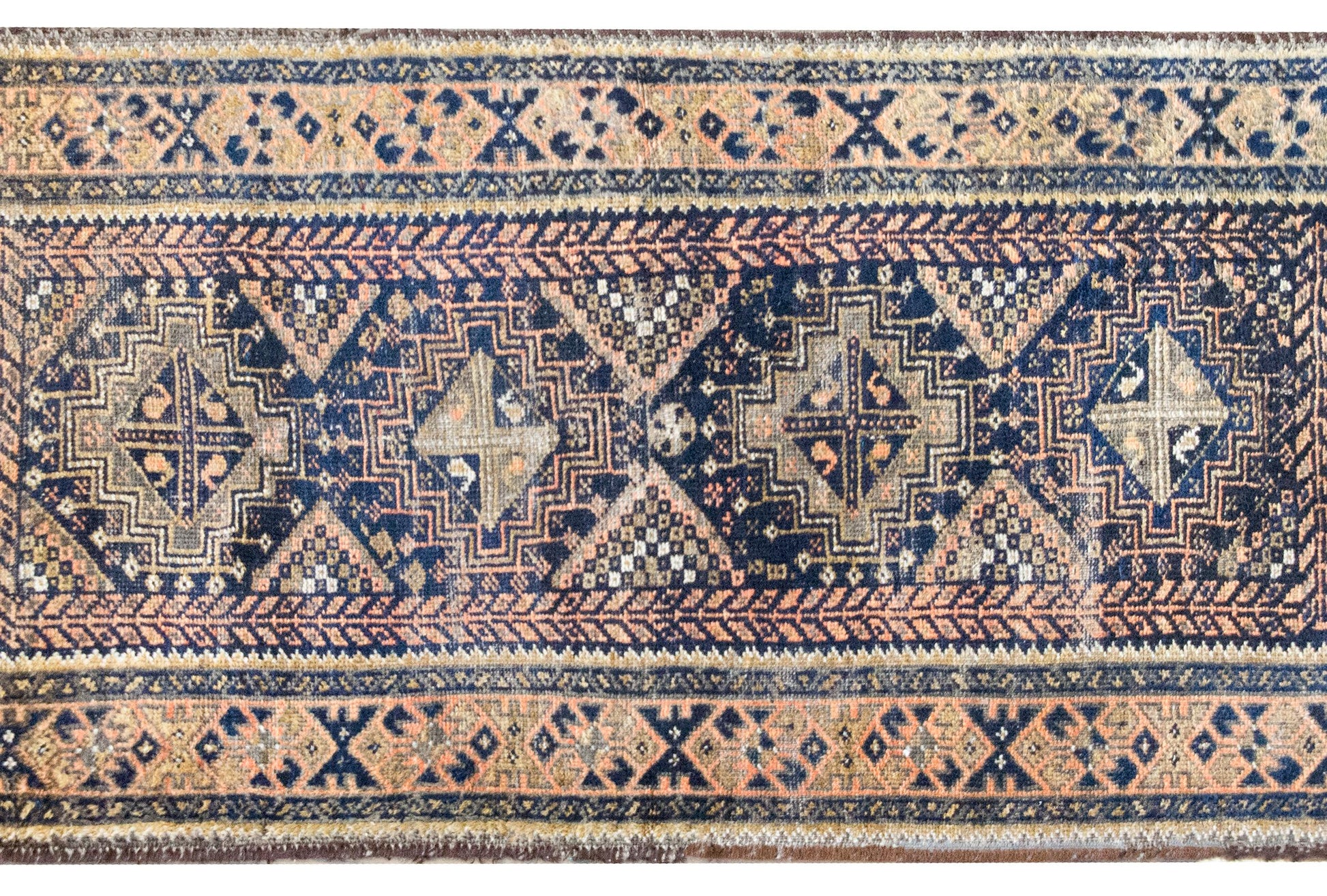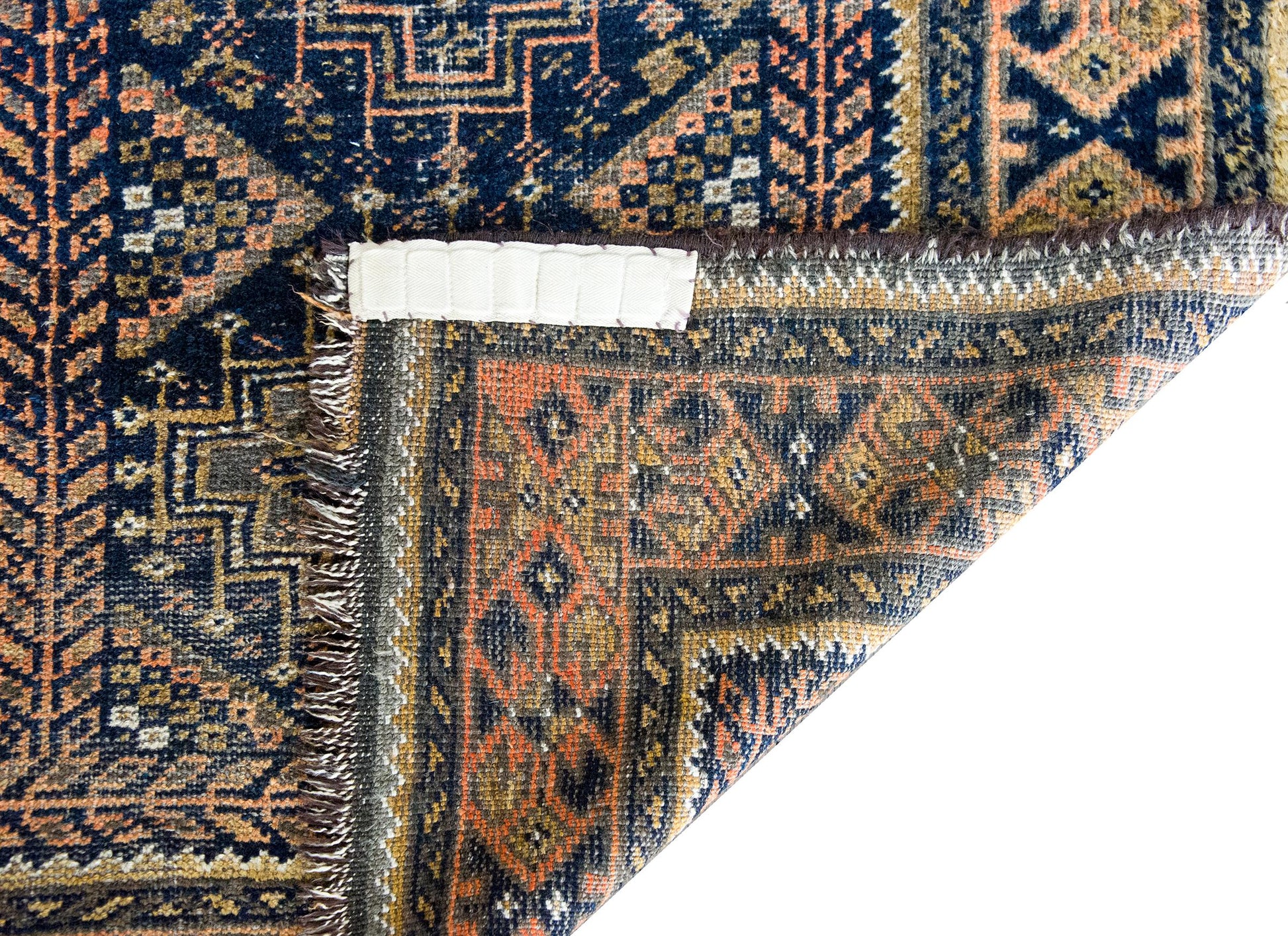 Baluch rugs are traditionally woven by semi-nomadic Baluchi tribes in the border regions of eastern Iran, western Afghanistan, and southern Turkmenistan. Known for their smaller scale, deep color, and richly detailed designs, Baluch rugs were most often woven by women on portable looms. This example reflects that legacy—personal, meticulous, and full of depth—made not for export, but for use and lasting beauty.