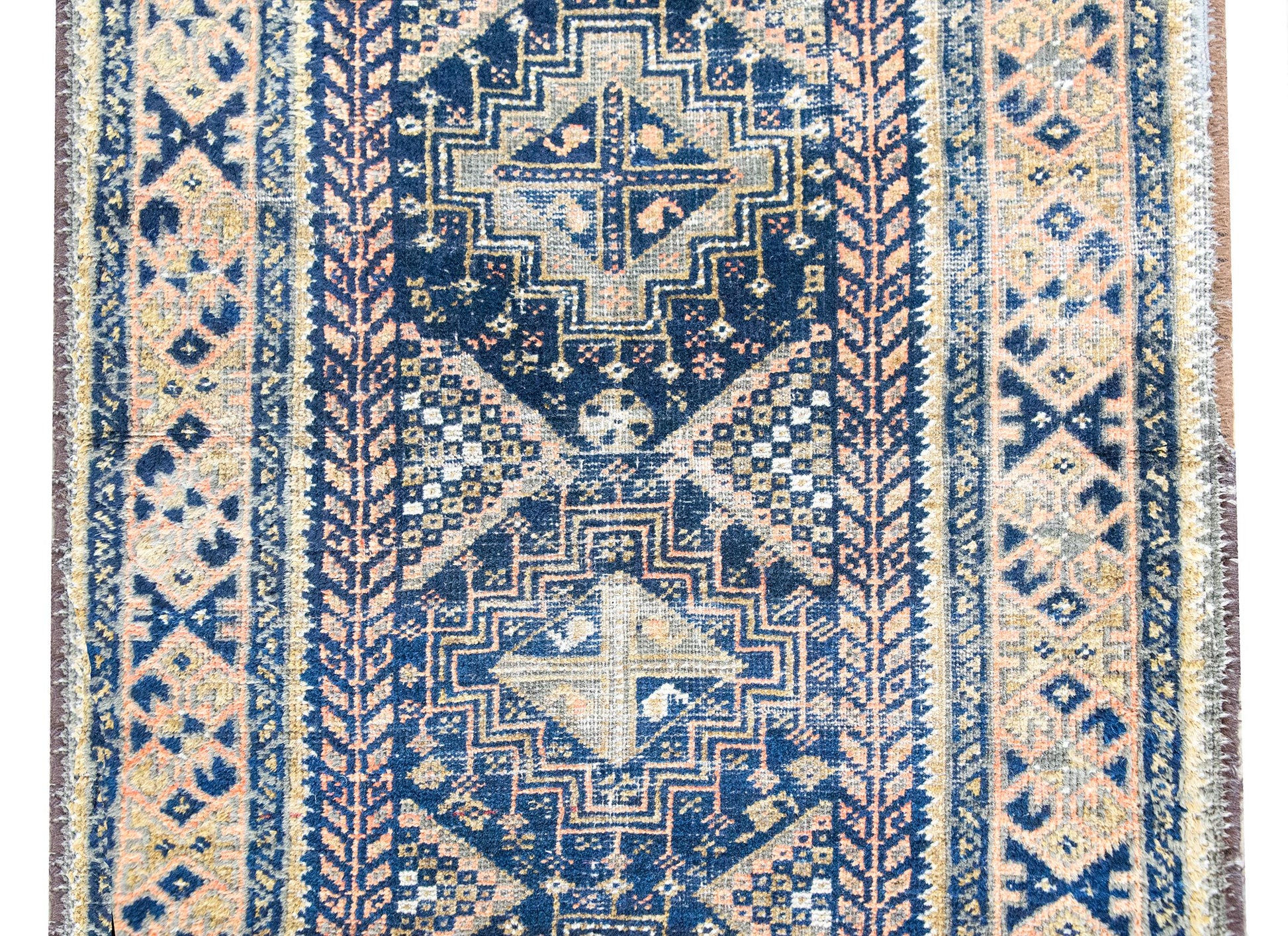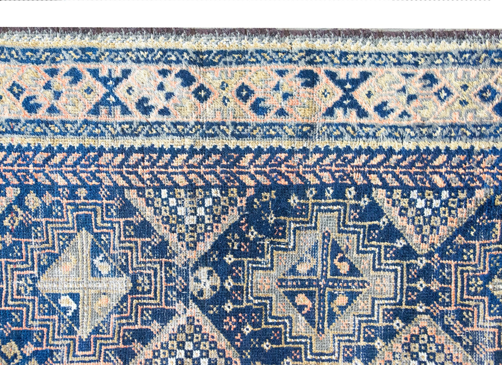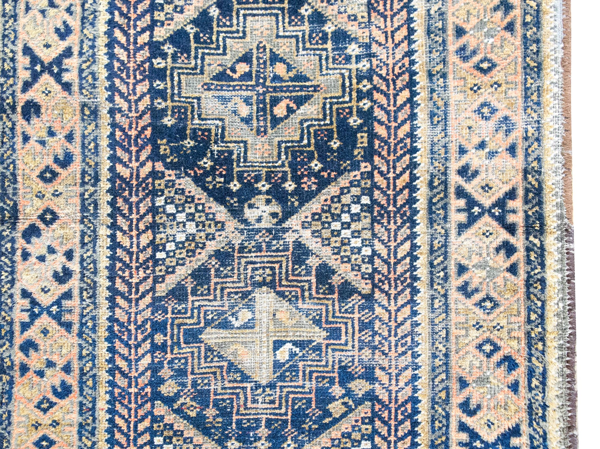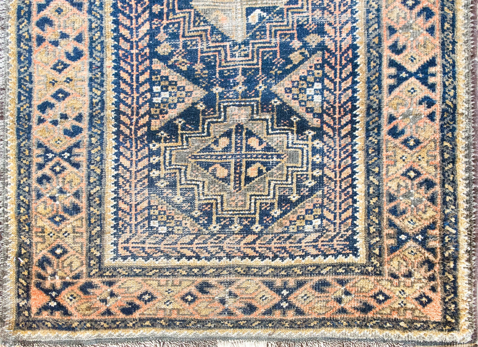 Baluch rugs are traditionally woven by semi-nomadic Baluchi tribes in the border regions of eastern Iran, western Afghanistan, and southern Turkmenistan. Known for their smaller scale, deep color, and richly detailed designs, Baluch rugs were most often woven by women on portable looms. This example reflects that legacy—personal, meticulous, and full of depth—made not for export, but for use and lasting beauty.