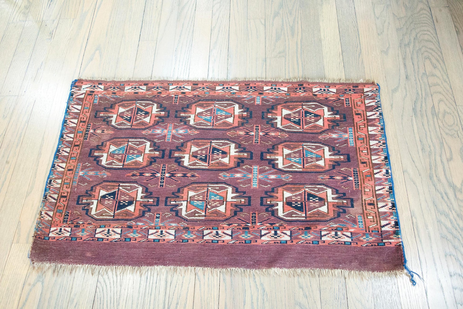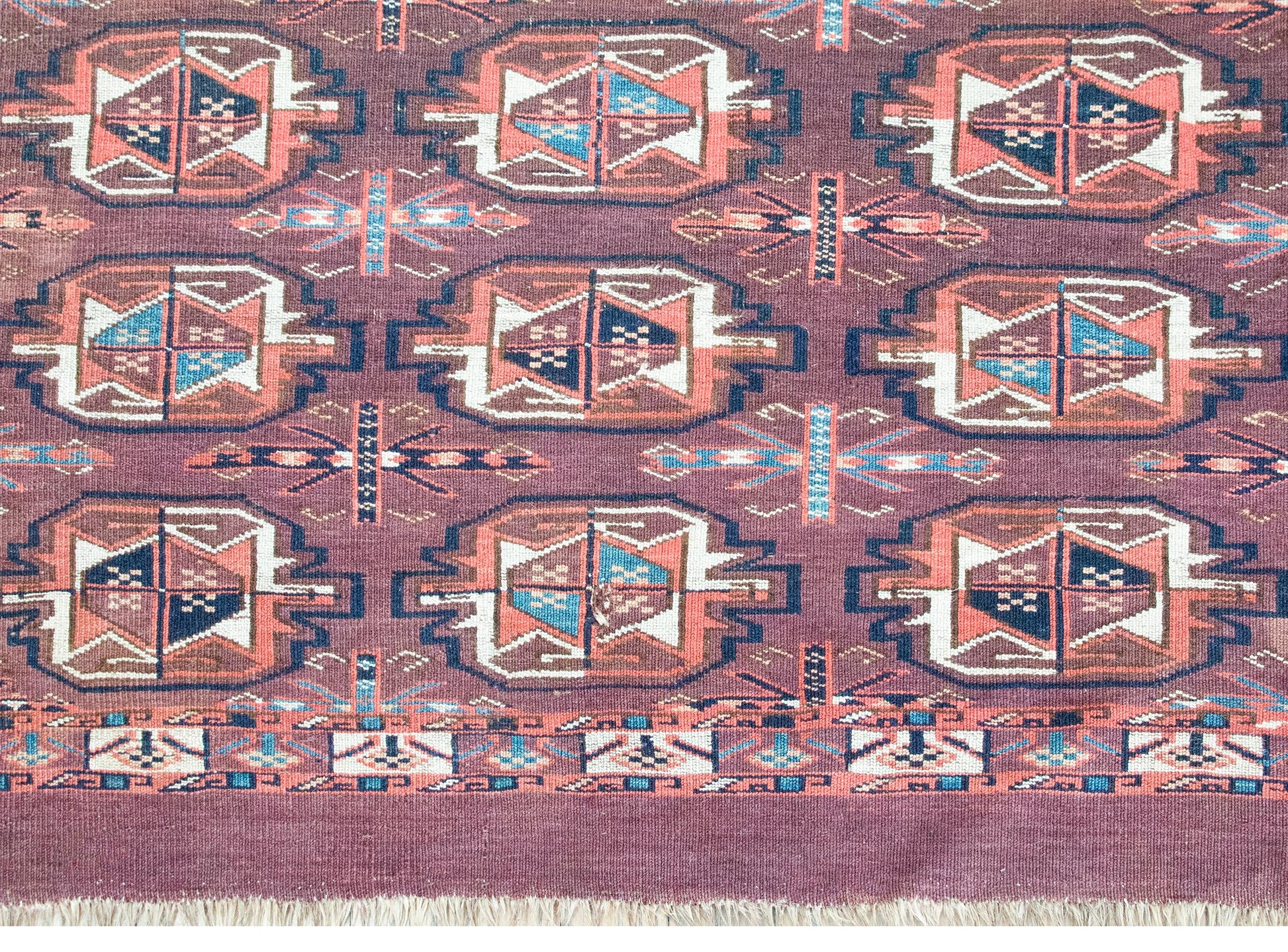 Yamout (or Yomut) rugs are woven by the Yamout Turkmen, a nomadic people historically living in northeastern Iran, near the border with Turkmenistan. Traditionally woven by women on ground looms, these rugs are known for their geometric precision, earthy color palettes, and tribal symbolism. Made for daily use in tents and homes, they carry a quiet strength and sense of identity—each one the product of deep tradition, practiced skill, and personal expression.
