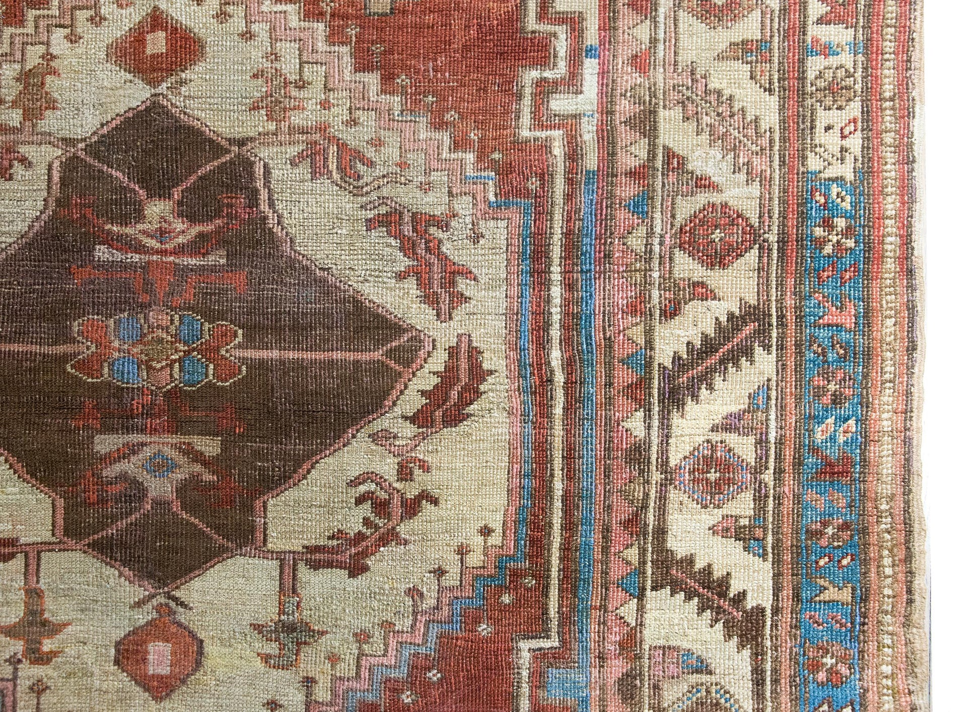Bakshaish rugs are highly sought after for their rarity and distinct aesthetic, blending Persian court tradition with a more primitive, large-scale tribal sensibility. Their designs, often inspired by classical Persian motifs but rendered with a looser, more expressive hand, make them exceptional statement pieces. This rug is a rare find, perfect for collectors and designers alike.