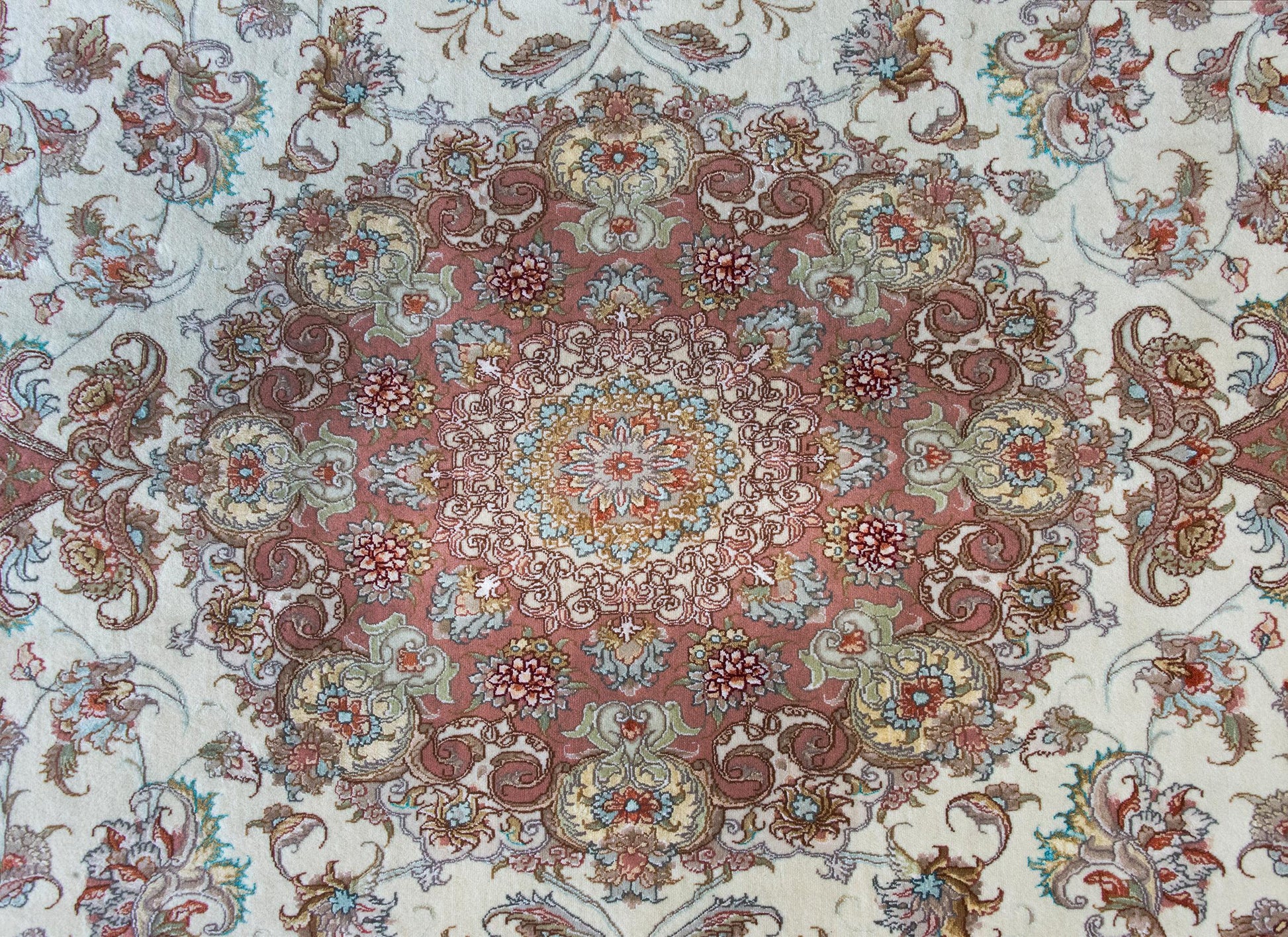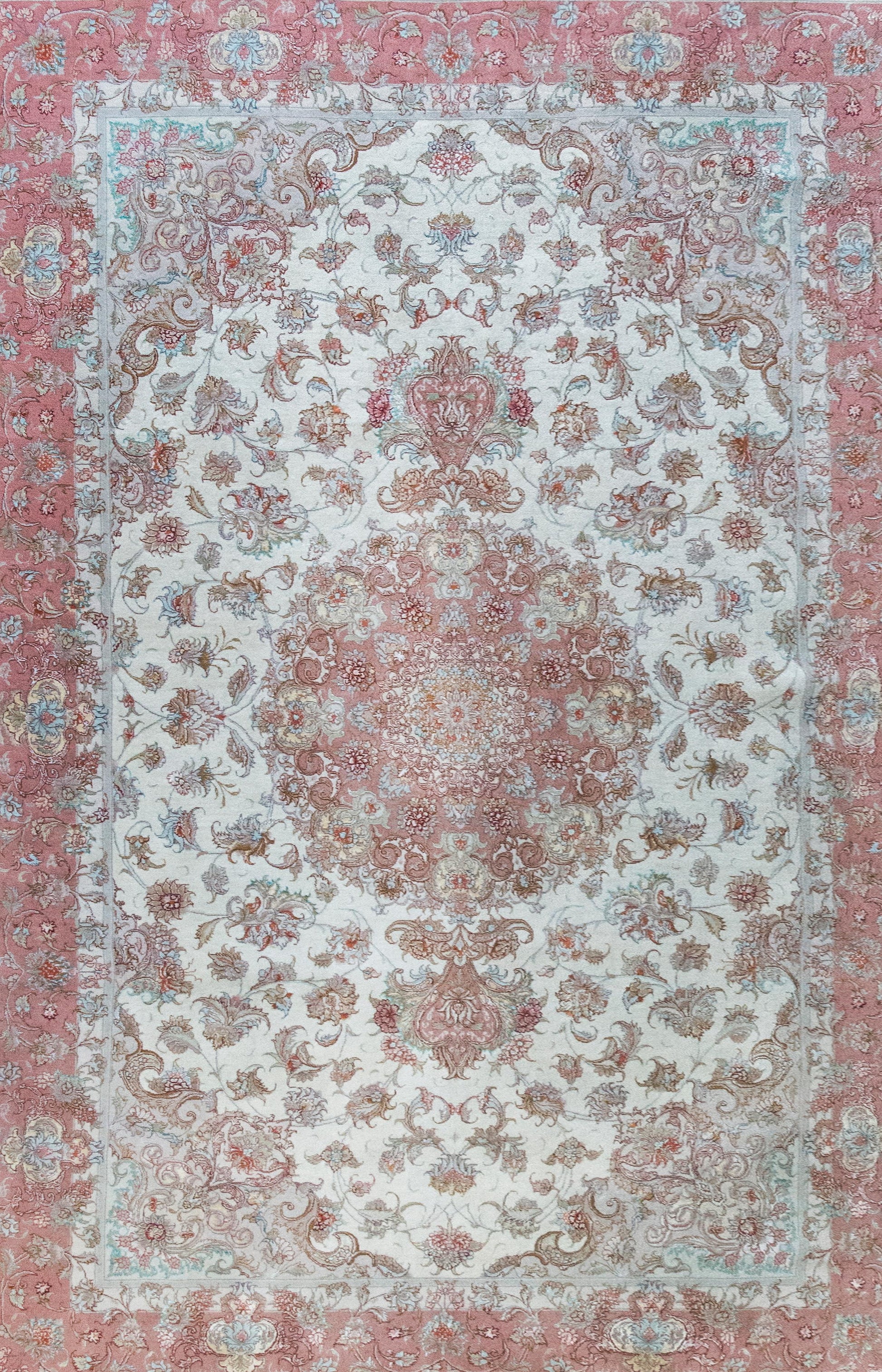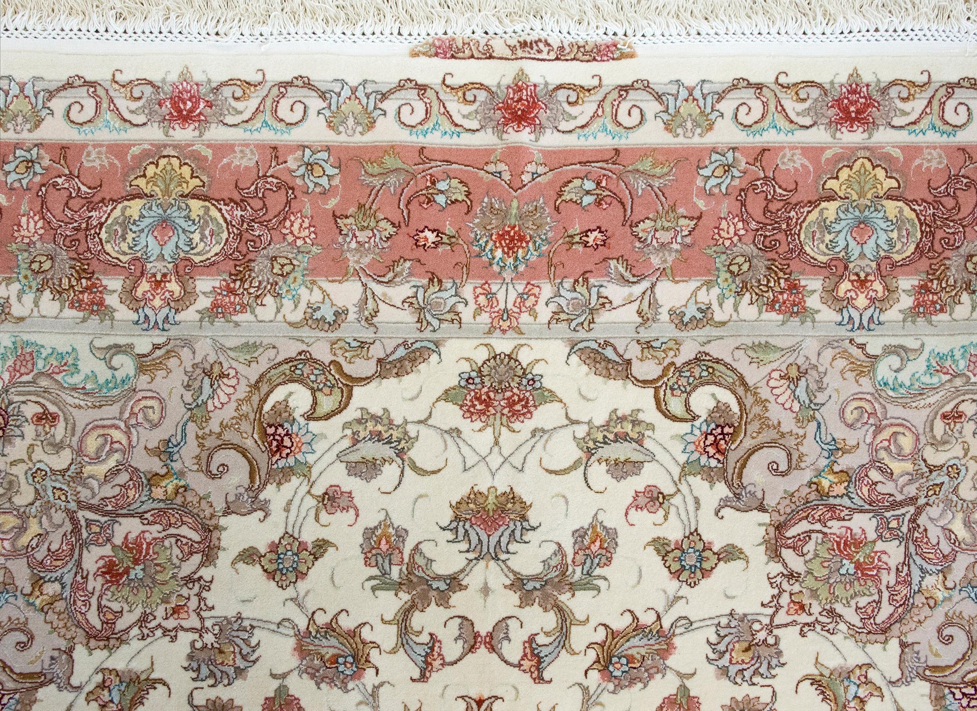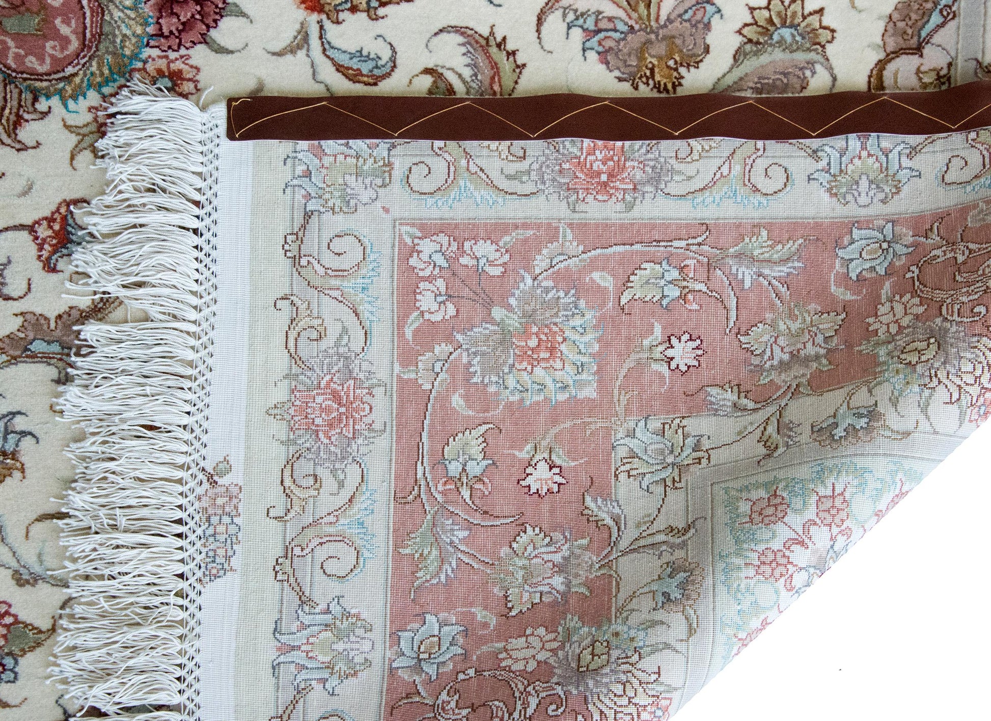 Tabriz rugs originate from the ancient city of Tabriz in northwest Iran—one of the oldest centers of rug weaving in the world. These rugs are known for their exceptional craftsmanship, tight knots, and elaborate patterns, often produced by master weavers with generations of skill behind them. This piece is a beautiful example of that tradition, blending technical precision with lush, painterly beauty.